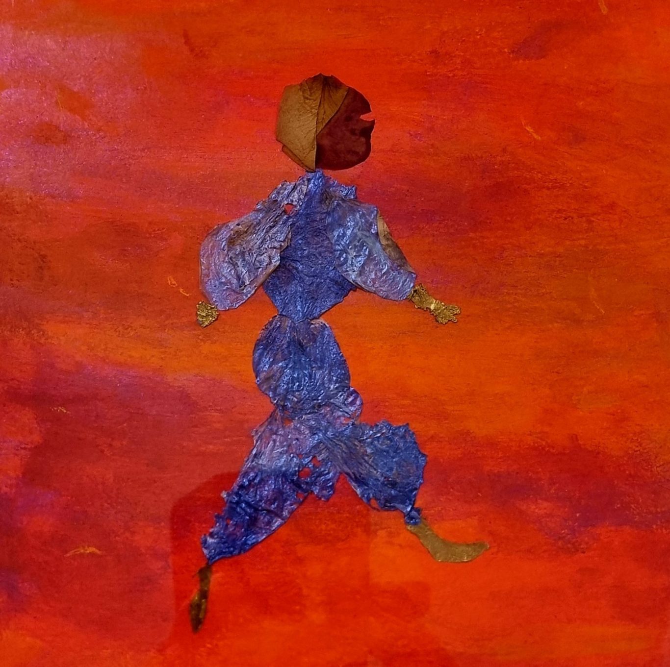 Mit Krokus, Mohnstempel u.a., Pigmente, 22x22x3 cm